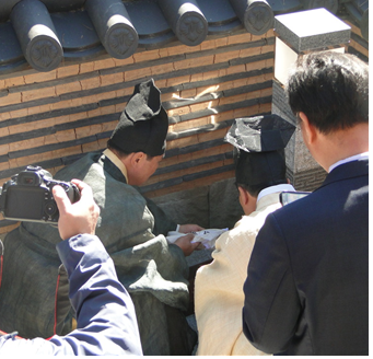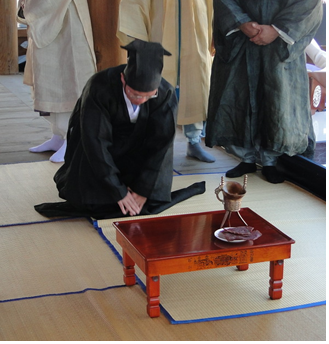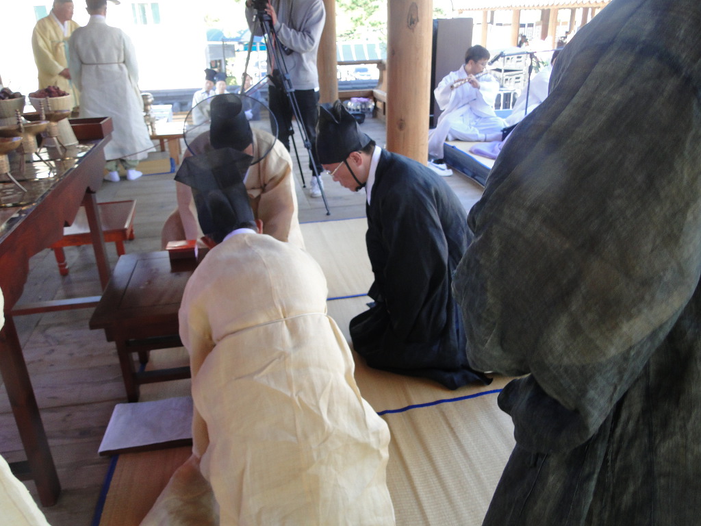 0 축관은 초헌관 좌편에 북향하여 꿇어 앉으시오