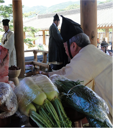 0 알자는 초헌관(初獻官)을 인도하여 동계(東階)로 올라가 진설(陳設)을 점검(點檢)하고 서계(西階)로 내려가 복위(復位)하시오