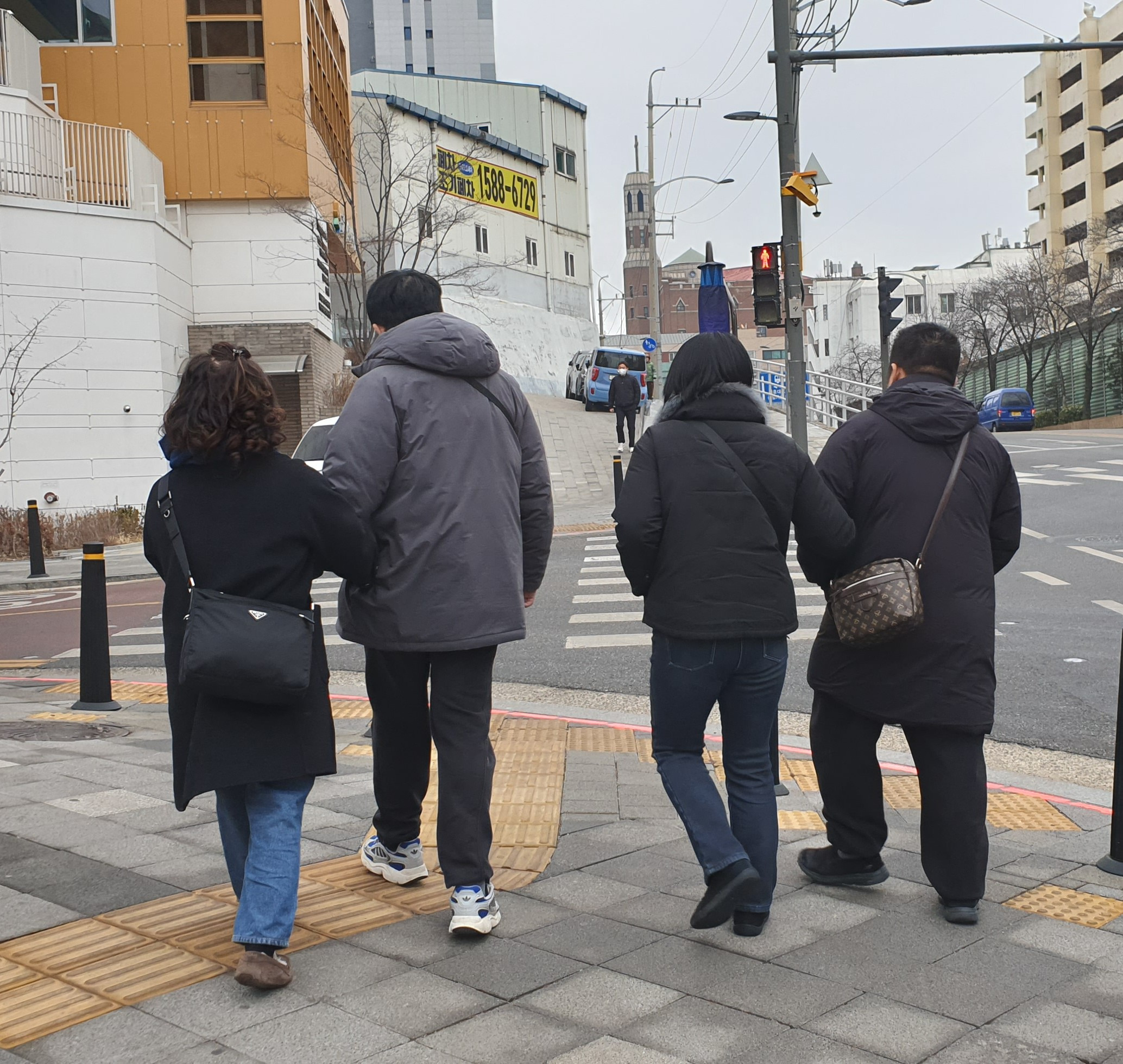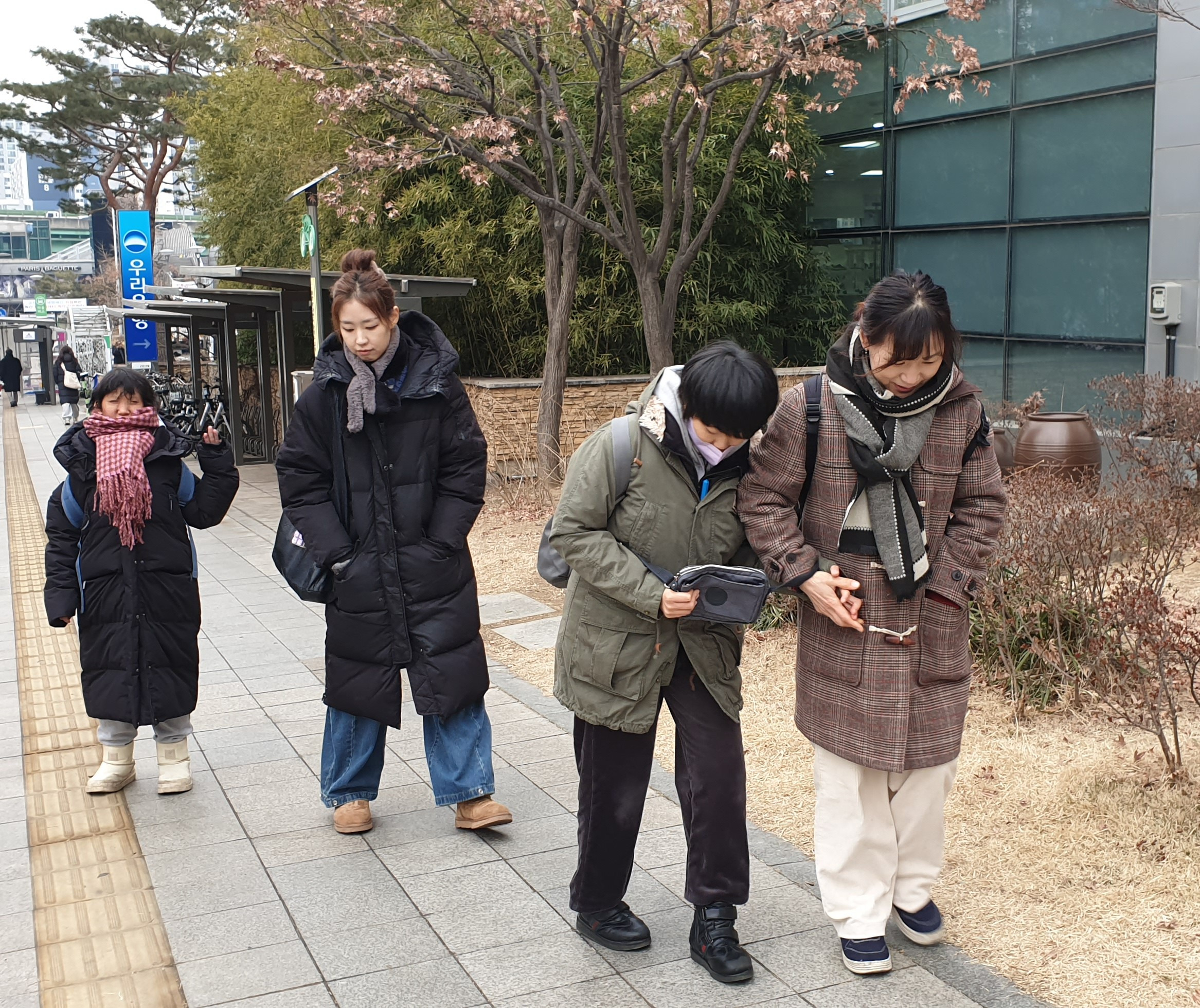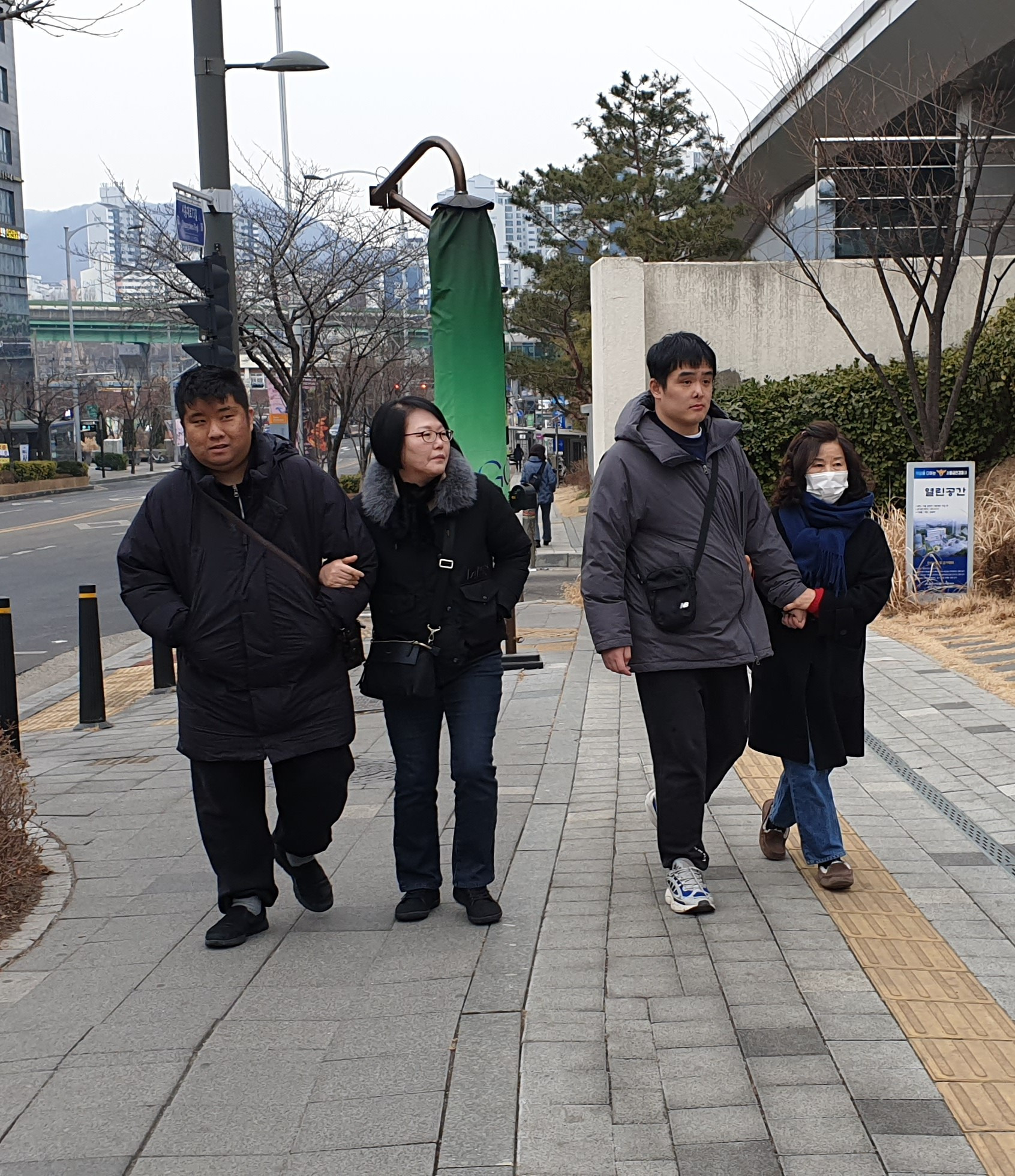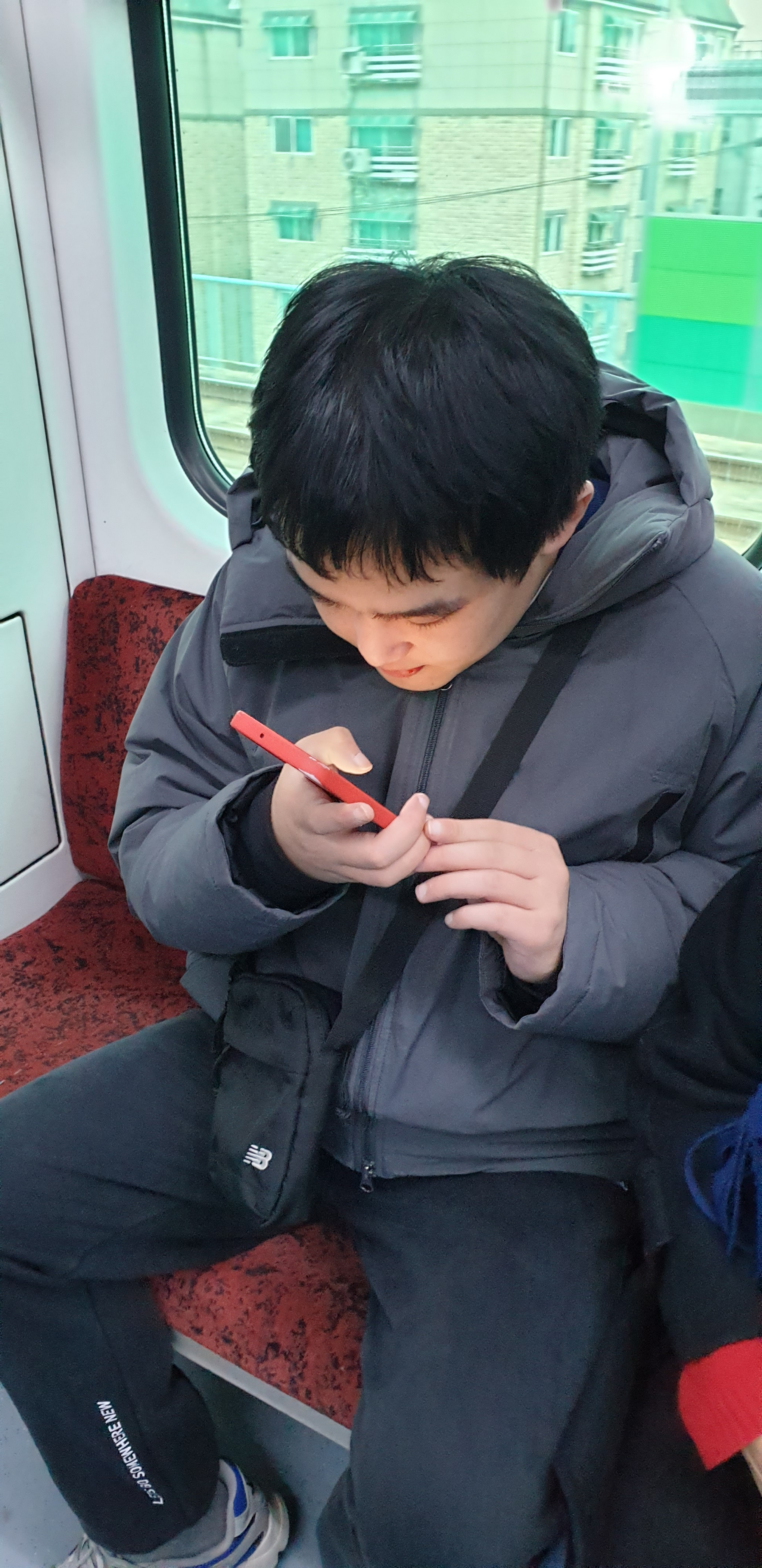 에너지가 넘치는 (♡철님 ) 을 더욱 특별히 밀착하며, 첫 방문하는 장소로 팔장을 끼고 같이 걷고, 우리가 가야 할 목적지로 안내하며 동행하였습니다. 주거지에서 각 팀별로 시청역에 모여 지하철로 이동하는 과정에 ♡철님은 노약자 좌석에 앉아 핸드폰으로 지하철 노선를 찾아보고 우리가 가야할 목적지에 대한 관심을 보였습니다.