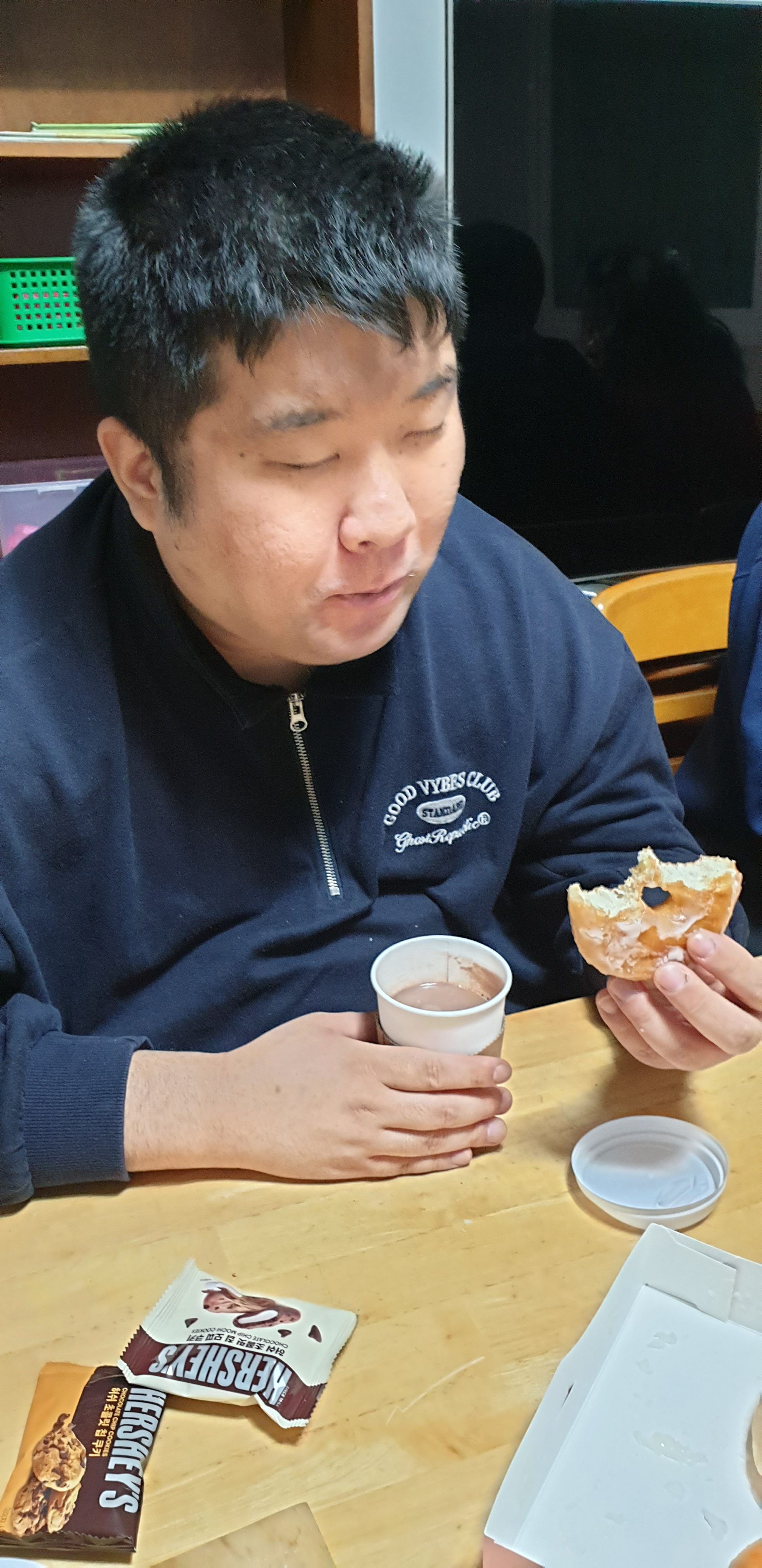글레이즈드 도너츠, 배, 초코쿠키, 호두과자 이용자분들이 좋아하는 간식를 준비해 오셔서 베풀어 주셨지요. 꾸뻑 ! 감사합니다. ♡