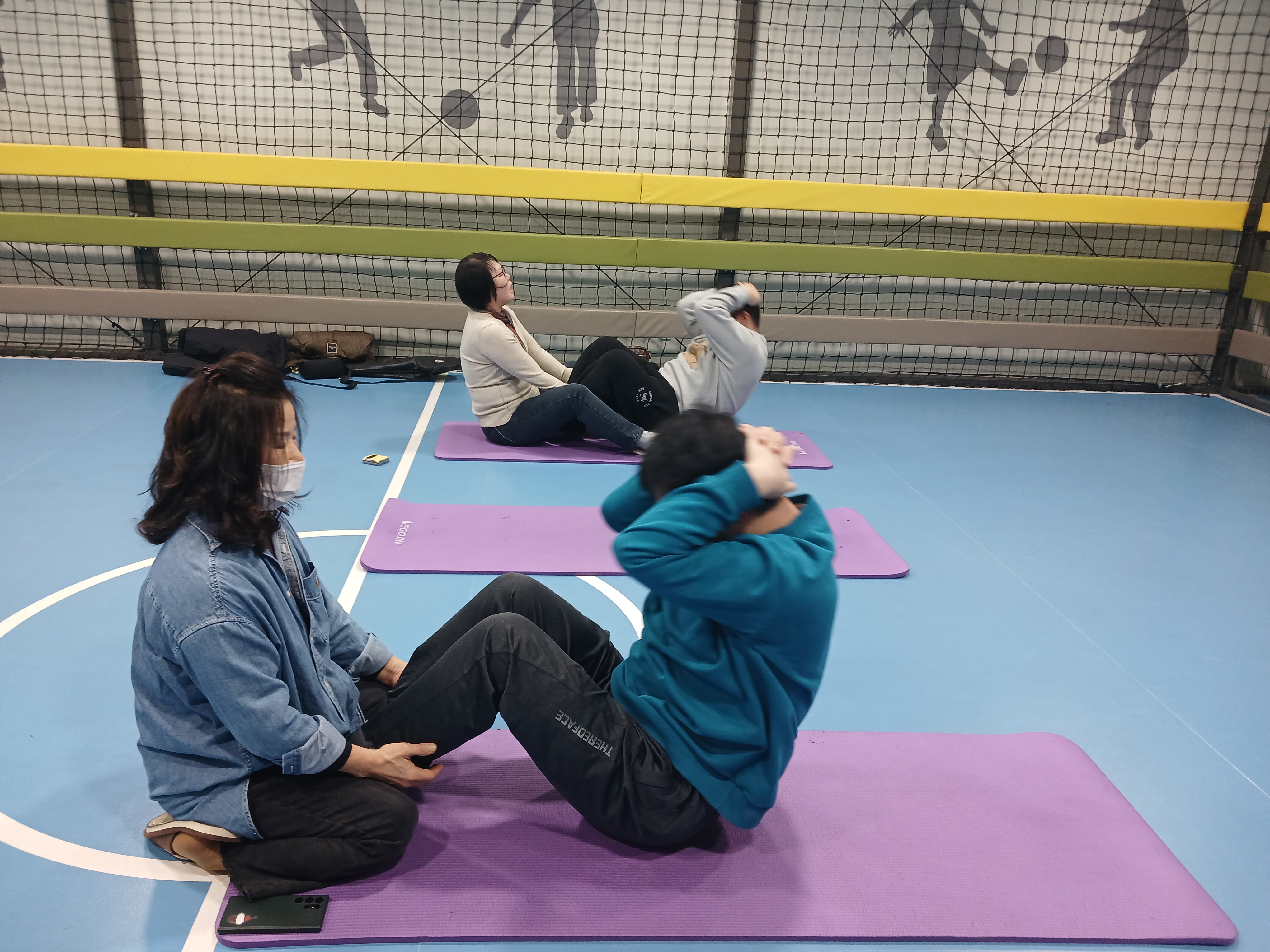 체육활동에서는 타깃 던지기, 국민체조, 윗몸일으키기 등 순서대로 참여하며 마무리까지 함께했습니다.