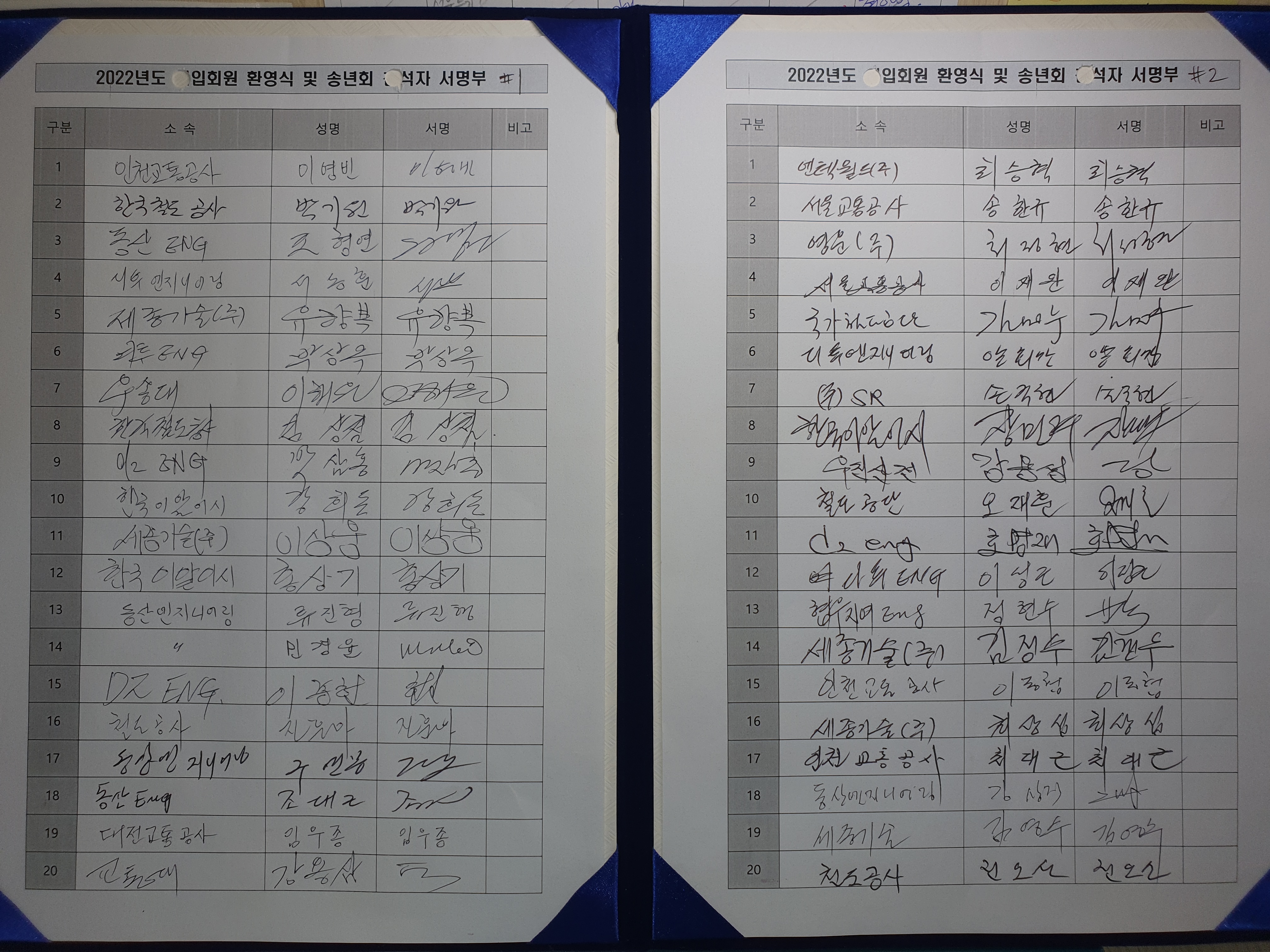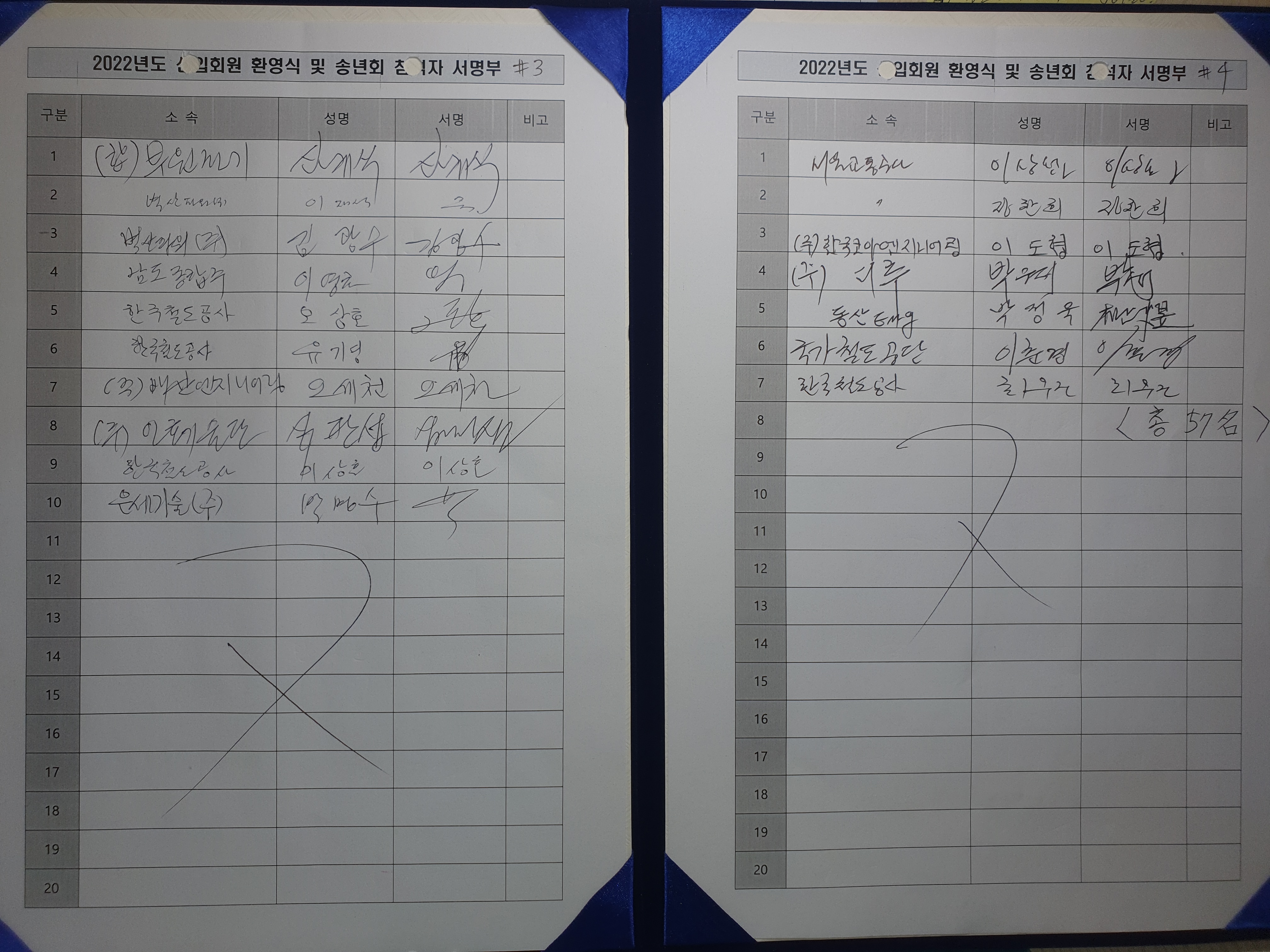 참석자 등록 준비(명찰, 서명지, 자료집, 회원수첩)