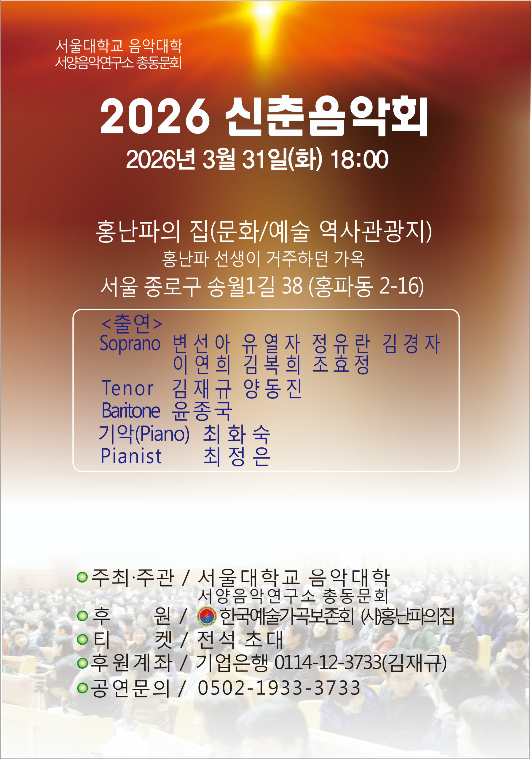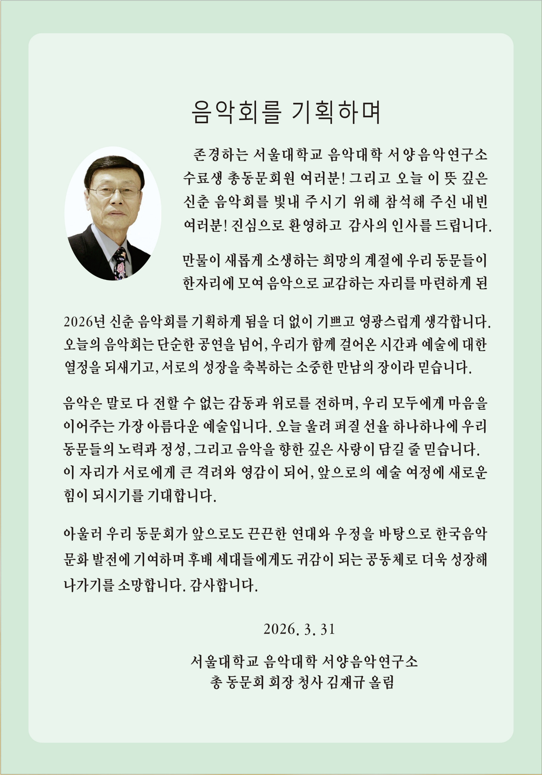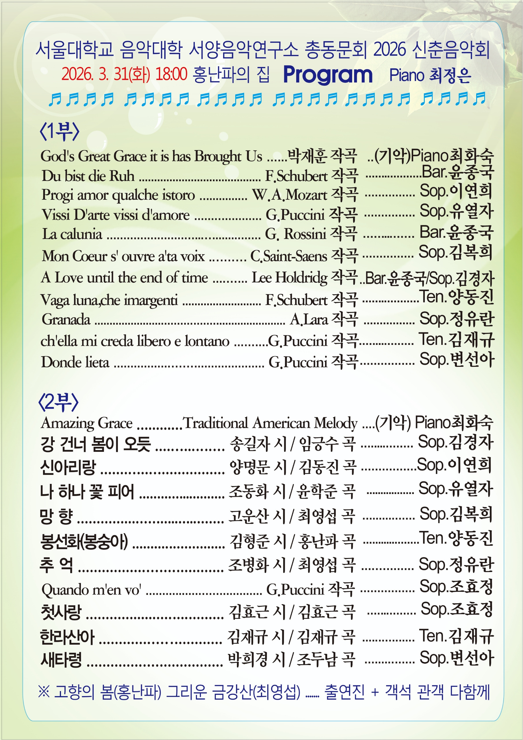 [스크랩] 서울음대 서양음악연구소총동문회 음악회 작성자청사/김재규|작성시간26.03.17|조회수39 목록 댓글 0 글자크기 작게가 글자크기 크게가 다음검색 스크랩 원문 : 한국예술가곡보존회 현재 게시글 추가 기능 열기 북마크 신고 센터로 신고 댓글 댓글 0 댓글쓰기 답글쓰기 댓글 리스트