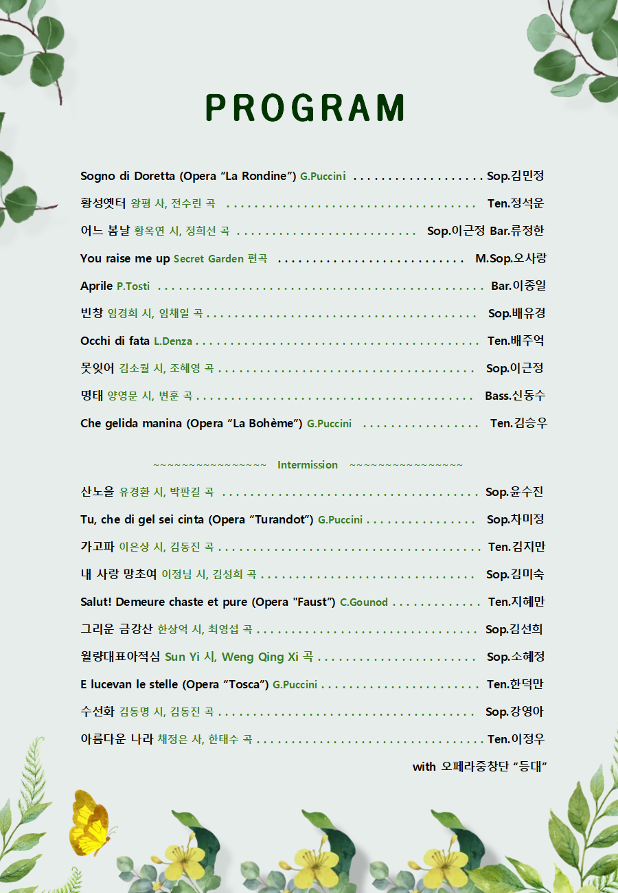 제26회 원더플싱어즈 음악회알립니다. 작성자강영아|작성시간26.03.22|조회수18 목록 댓글 0 글자크기 작게가 글자크기 크게가 4월4일 오후5시 방배동 ys홀살짜기 오세요 ~~^^ 다음검색 현재 게시글 추가 기능 열기 북마크 신고 센터로 신고 댓글 댓글 0 댓글쓰기 답글쓰기 댓글 리스트
