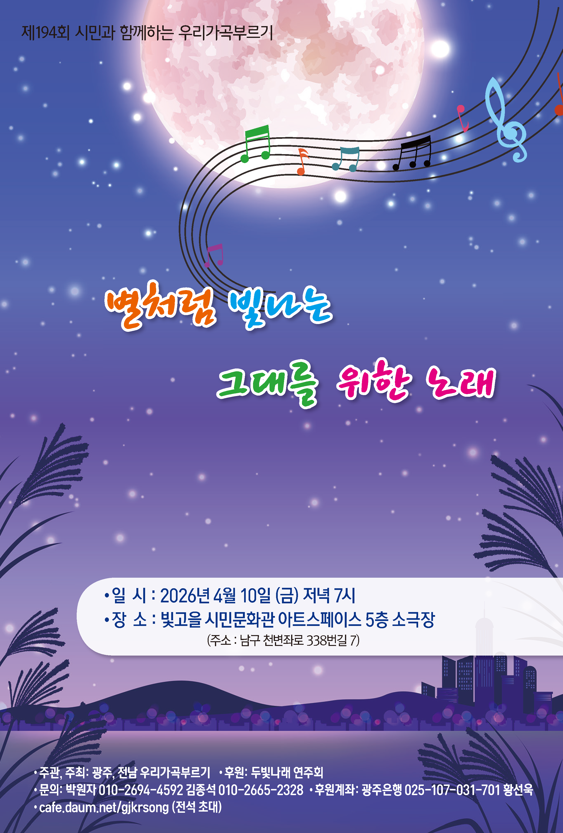 [스크랩] 제194회 광주.전남 우리가곡부르기- 별처럼 빛나는 그대를 위한 노래 작성자박원자|작성시간26.03.24|조회수6 목록 댓글 0 글자크기 작게가 글자크기 크게가 다음검색 스크랩 원문 : 광주전남 우리가곡부르기 현재 게시글 추가 기능 열기 북마크 신고 센터로 신고 댓글 댓글 0 댓글쓰기 답글쓰기 댓글 리스트