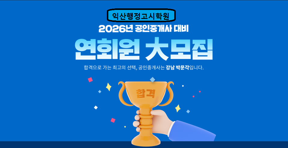2026년대비 공인중개사 3월3일(화) 대 개강 익산 군산 전주 논산 김제 중개사 부동산 합격률 최고 합격생 추천 학원 작성자익산행정고시학원|작성시간26.02.23|조회수45 목록 댓글 0 글자크기 작게가 글자크기 크게가 다음검색 현재 게시글 추가 기능 열기 북마크 공유하기 신고 센터로 신고 댓글 댓글 0 댓글쓰기 답글쓰기 댓글 리스트