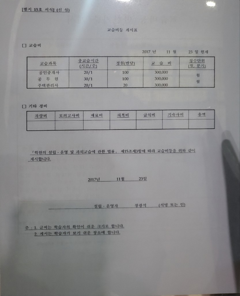 블로그 필수 게시사항 정리 작성자익산행정고시학원|작성시간25.09.02|조회수39 목록 댓글 0 글자크기 작게가 글자크기 크게가 본원 필수 게시사항 안내학원명: 익산행정고시학원등록번호: 403-91-19026교습비: 30만/월교습과정: 공인중개사/공무원/주택관리사 다음검색 현재 게시글 추가 기능 열기 북마크 공유하기 신고 센터로 신고 댓글 댓글 0 댓글쓰기 댓글 리스트