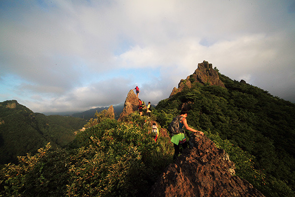 첫 번째 봉우리를 지나 두 번째 봉우리를 향해 가고 있다. 클라이밍 지식이 있다면 걸어가는데는 큰 어려움이 없으나 안전을 위해 로프를 사용했다.
