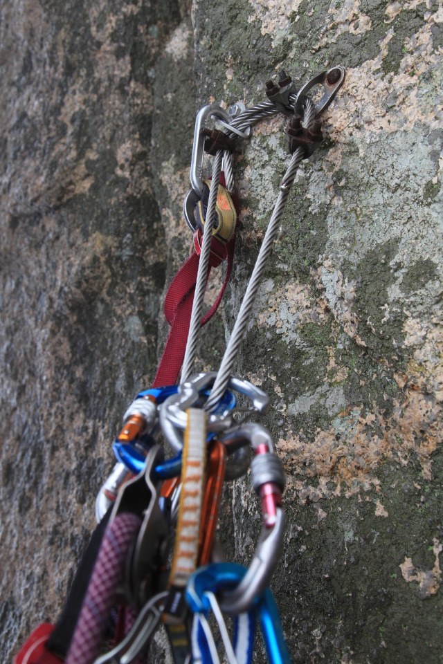 추후 이곳을 등반하는 사람은 유심히 보라. 알루미늄 행거가 와이어에 계속 쓸려 반쯤 닳아 없어진 것도 있다.