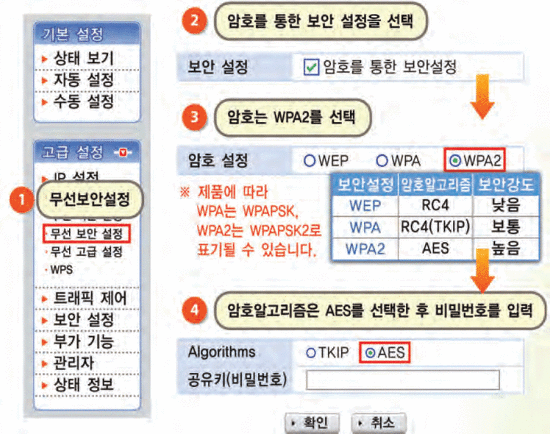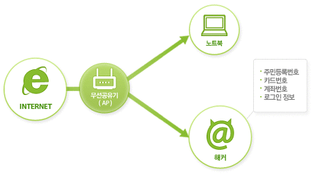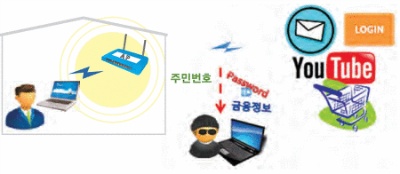 무선랜 보안과 이용상 주의점 무선랜이란? 무선랜 보안은 왜 필요할까요? 무선랜 이용자의 중요정보 유출 인터넷 전화 도청 바이러스, 악성코드 등을 유포하는 경유지로 악용 무선랜에 안전 이용 수칙 1.무선공유기 사용시 보안기능 설정하기 우리 집 무선랜에 보안이 설정되어 있나요? 1. 무선공유기와 컴퓨터 또는 노트북을 연결합니다. 2, 무선공유기 관리화면으로 접속합니다. 3. 무선공유기 관리화면에서 보안기능을 설정합니다. |