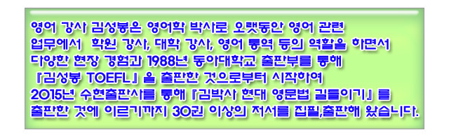 아래의 내용은 김성봉영어평생교육원 회원님의 질문과 답변입니다.