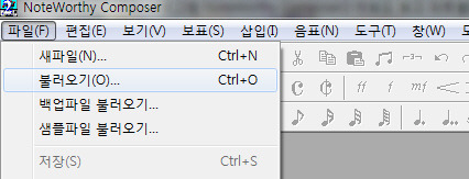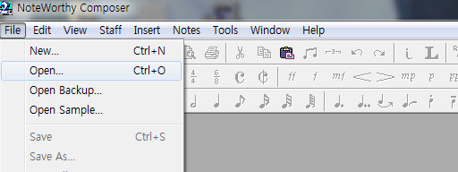 아래 그림처럼 'File'을 누르시고, 'Open'을 누르신 후 그 악보가 저장 된 곳을 찾아 선택해서 여십시오