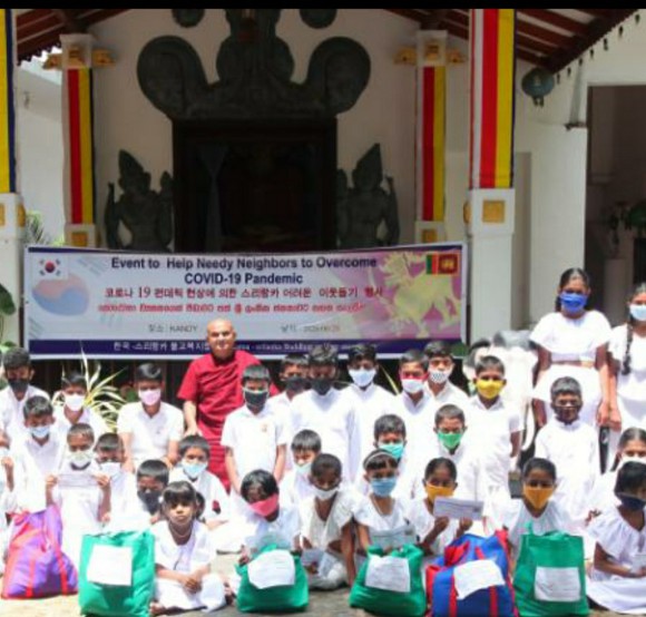 지난 5월 17일 한.스리랑카불교복지협회 임원회의에서 결정해서, 5월 30일 스리랑카로 보낸 2020년도 스리랑카 어린이돕기성금(300만원)으로 코로나19 펜데믹으로 어려움을 껶고 있는 스리랑카 어린이들을 돕기 위한 행사가, 2020년 6월 28일 오전 10시 스리랑카 캔디 인근의 마더웰러시의 스리진남망갈라마야 사원에서 150여명의 어린이들이 뫃인 가운데 거행되었다.
