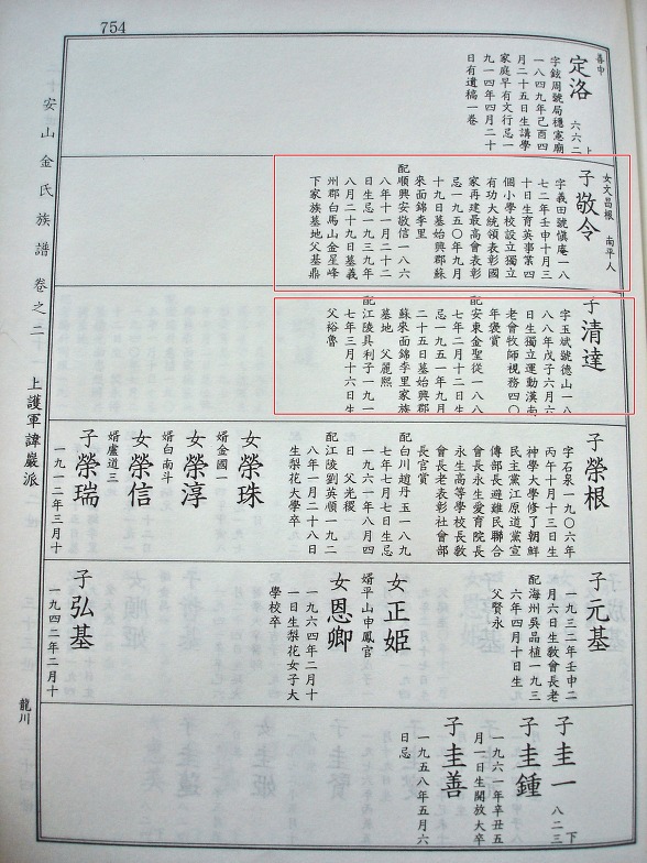 안산김씨 족보