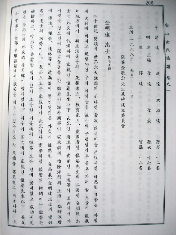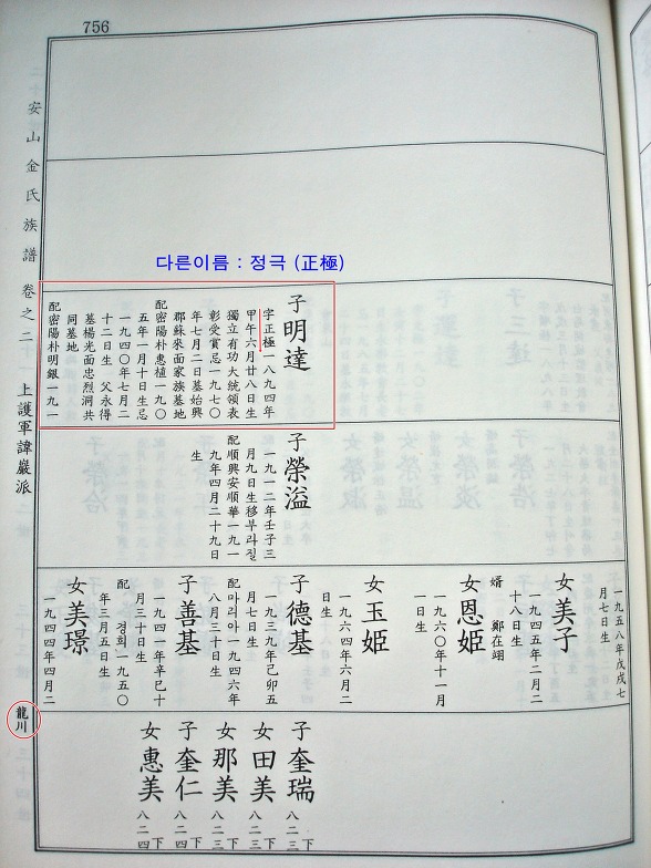 안산김씨 족보 : 김명달 지사 이명(異名) 정극(正極)