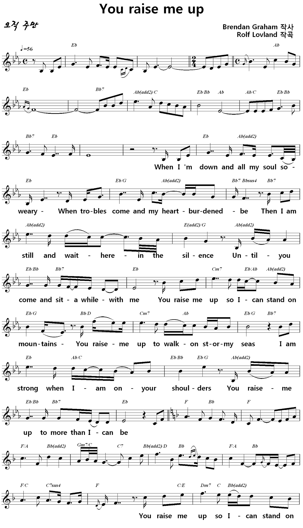 You Raise Me Up / When I'm down [Kd] 영문 성가악보 다운받기