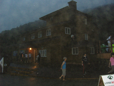 정말 더 이상 말도 안나오고 체력의 한계가 왔다 싶을 때 오아시스, 천당과 같이 반가운 세석에 도착했다. 문순태의 소설 철쭉제에 나오는 세석평전. 오늘 세석에서 1박하기로 한 곳이다. 약 22,4Km 13시간을 걸어 도착한 것이다. 빈 자리가 없는 줄은 알지만 대기 번호라도 적어 놓으려고 최대한 지치고 불쌍한 표정으로 대피소 창구에 가서 자리 있냐고 물어본다. 지금은 자리가 없고 일단 저녁을 먹고 7시까지 기다려 보란다. 자리가 없으면 옆에 텐트라도 치려고 작정을 하고 나니 땀이 식고 해가 져 점점 추워온다. 무게를 줄이기 위해 따뜻한 긴 옷도 가지고 않았는데... 보온을 위해 다시 우의를 뒤집어쓰고 기다린다. 늦게 도착하는 사람들이 예약해 놓은 대피소 안으로 들어가는 것이 너무나 부럽다. 다행히 우천관계로 예약했던 많은 등산객들이 무더기로 오지 않았단다. 너무나 다행이었다. 설악산처럼 대기 접수순이 아니라 노약자들이 먼저 배정되고 그다음 나이순으로 배정한단다. 난 언제쯤이나 배정될지 걱정하던 차에 오늘은 자리가 많이 비어 대기자 모두 배정된단다. 정말 다행이다. 배정받은 자리로 짐을 옮기고 마른 옷으로 갈아입었다. 다행히 여러 겹으로 나누어 비닐 포장을 해 둔 관계로 배낭 안의 짐은 젖지 않았다. 비누나 치약을 사용할 수 없어 그냥 흐르는 물에 고양이 세수나 하고 말았다. 다소 불편하기는 하지만 우리 소중한 자연을 지키기 위해서는 감수해야 할 가치가 있다. 밥을 해 먹고 난 코펠도 그냥 휴지로 닦아 넣는다.