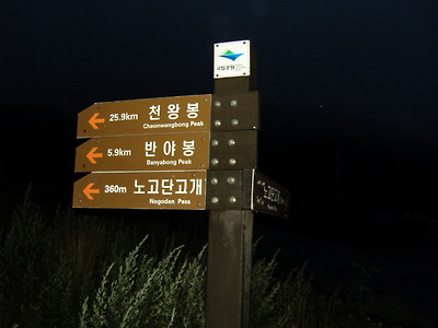 비도 온다고 하고 혼자 간다니 아내가 퉁퉁거린다. 한 마디 쏘아붙였다가 돌아올 때까지 속끓이고 있을 것같아 입맞춤으로 달래주고 길을 나섰다. 슈퍼에 들러 행동식과 건전지를 사서 지하철을 탔다. 환승역에서는 정신없이 뛰어서 출발 2분 남기고 간신히 구례구행 열차를 탈 수 있었다. 새벽 3시20분에 도착한다니 자리에 앉자마자 비가 오지 않기를 빌며 잠을 청한다. 전주를 지나며 뿌리기 시작하던 비가 구례구에 도착하니 장대비가 되었다. 이런 비에도 종주하려는 등산객이 시내버스를 다 채우고, 서서 가는 이도 있을 만큼 많다. 대기하고 있던 버스를 타고 구례터미널에 경유하여 아침용 김밥 두 줄을 사서 성삼재에 도착하니 새벽 4시30분. 비는 여전히 세차게 퍼붓고 있다. 배낭커버를 씌우고 우의를 입고 랜턴을 켜고 스틱을 잡고 출발한다.