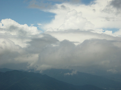 멀리 겹겹이 쌓인 산맥들이 보일려고 하니 또 먹구름이 몰려온다.