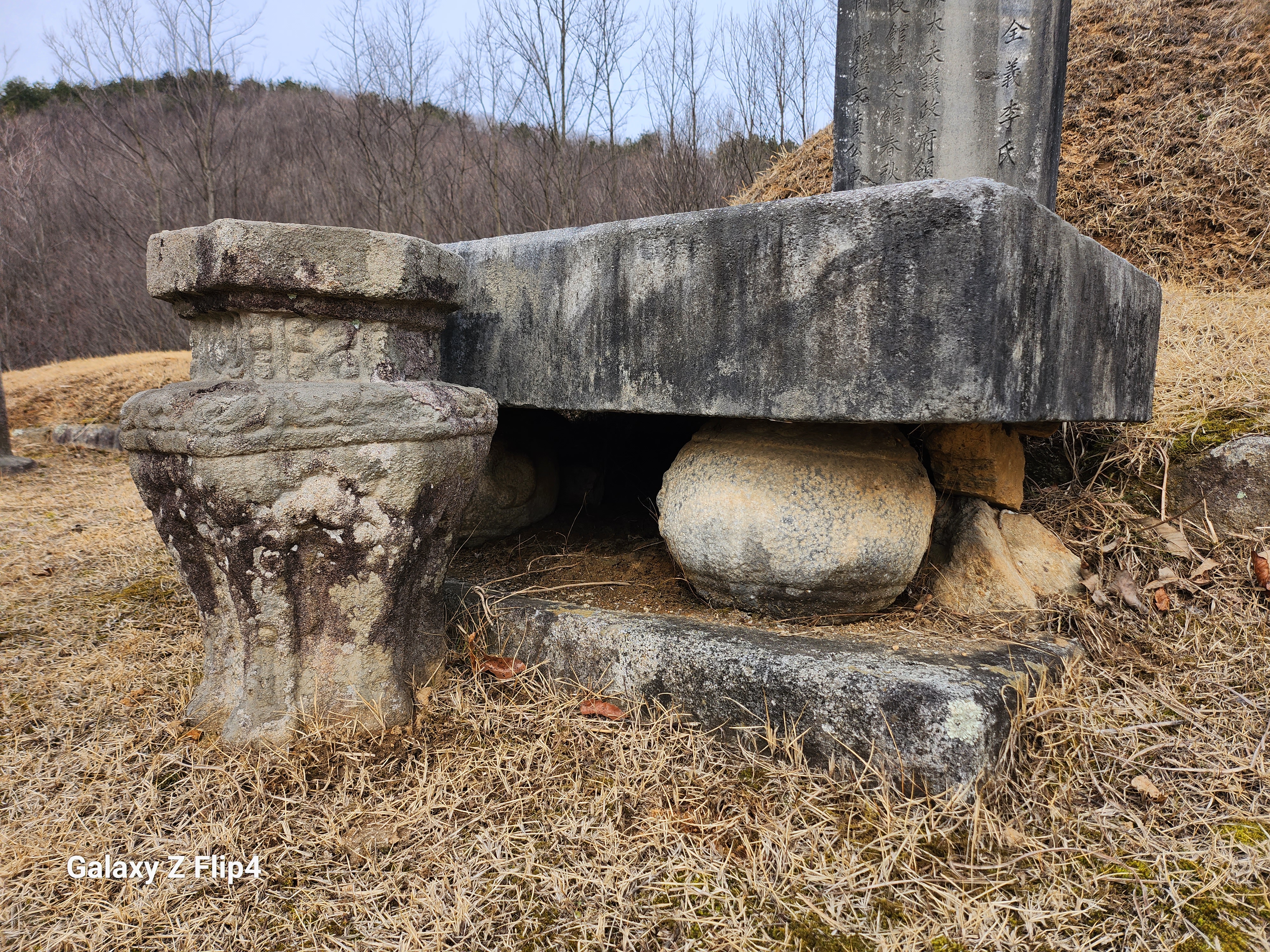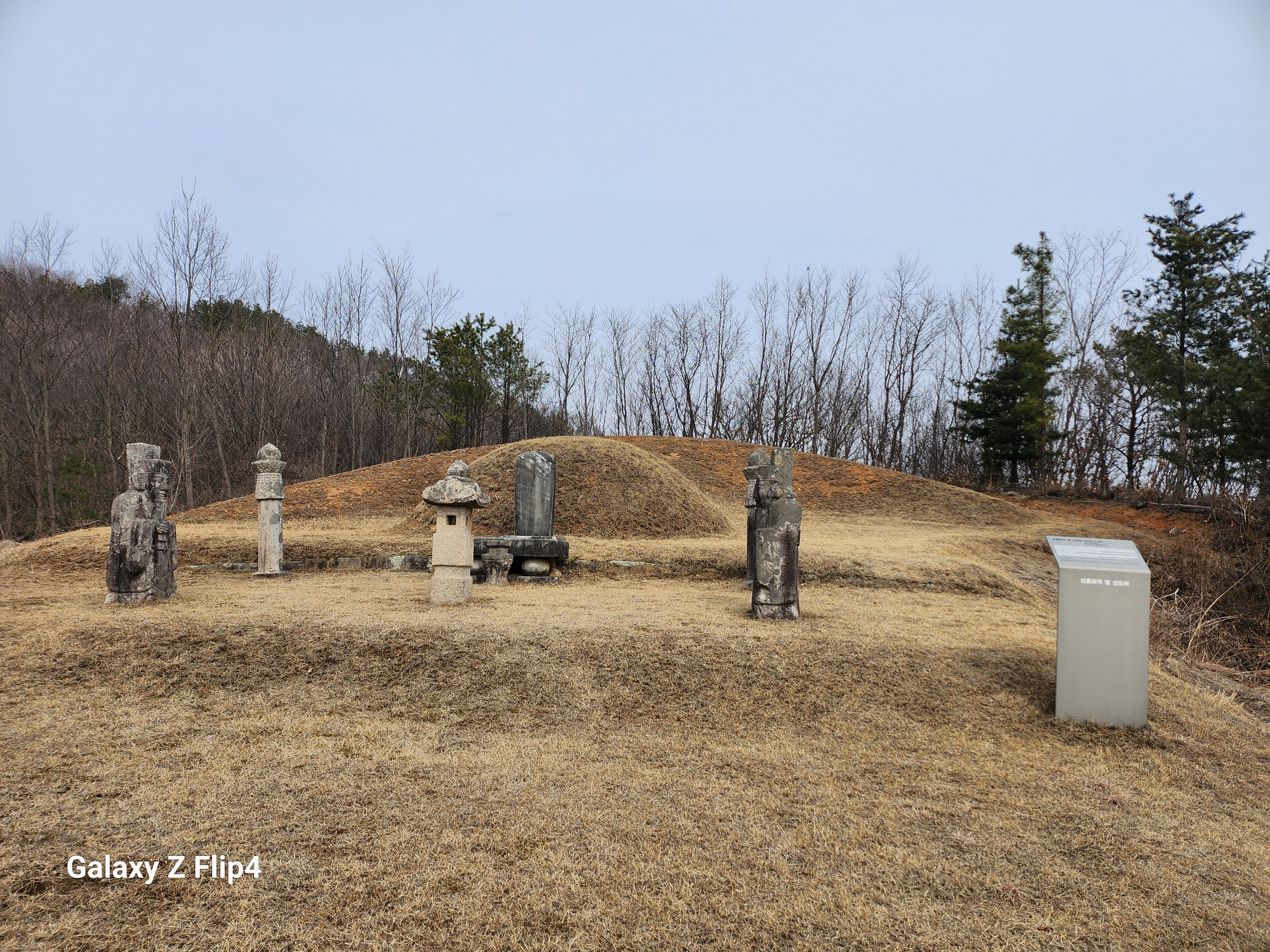 묘비문은 신흠이 손수 지었다고 한다. 묘비는 인조 6년(1628)에 세웠다고 전한다. 봉분 앞 상석과 향로석은 당시에 조성된 것으로 추측된다. 복두공복형의 문인석은 수 백 년 지난 세월에 비해 조각이 정교하다. 장명등은 불켜는 부분에 돌을 깎아 세워놓아 독특하다. 산신석은 최근에 조성된 것으로 보인다. 벼슬에 비해 화려하지 않은 모습이 무덤에서도 겸손함을 느낀다.