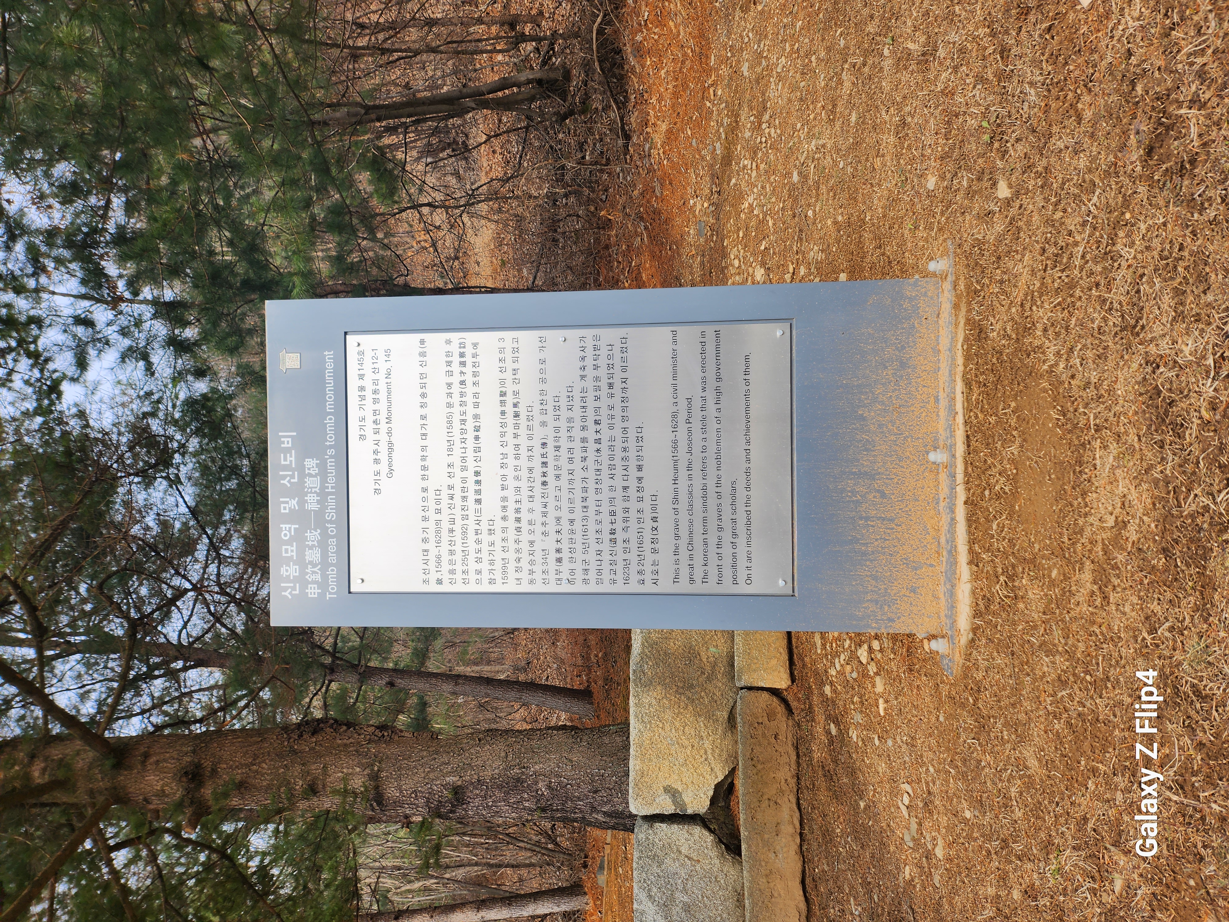 문학도들의 우상인 상촌 선생은 1628년 6월29일(인조6)에 갑자기 건강 악화로 세상과 인연을 접는다. 현재 광주시 퇴촌면(영동리산12ㅡ1)에서 영면 중이다. 묘역 300여m 전前 오솔길에서 신도비(335cm)를 만난다. 경기도 기념물 제 145호로 기록된다. 효종 2년(1651) 인조 묘정에 배향되었으며 시호는 문정文貞이다. 부인 전의이씨全義李氏와 합장묘이다. 가파른 언덕위 중턱 능선 양지바른 남향에 자리잡았다.