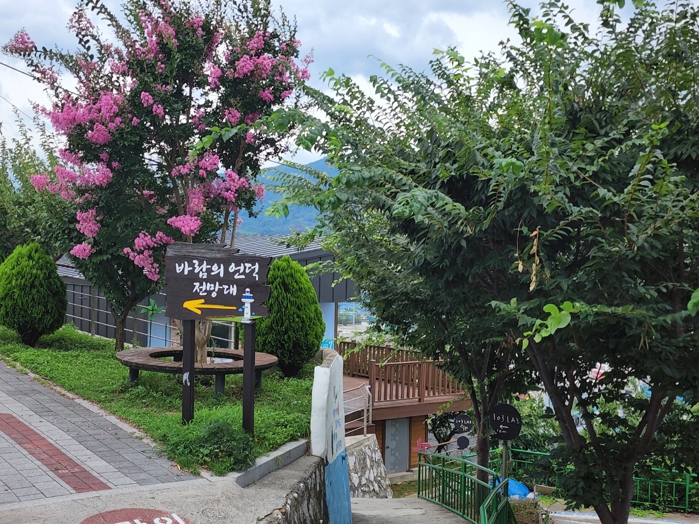 바람에 언덕을 오르니 동해바다가 한눈에 들어오고