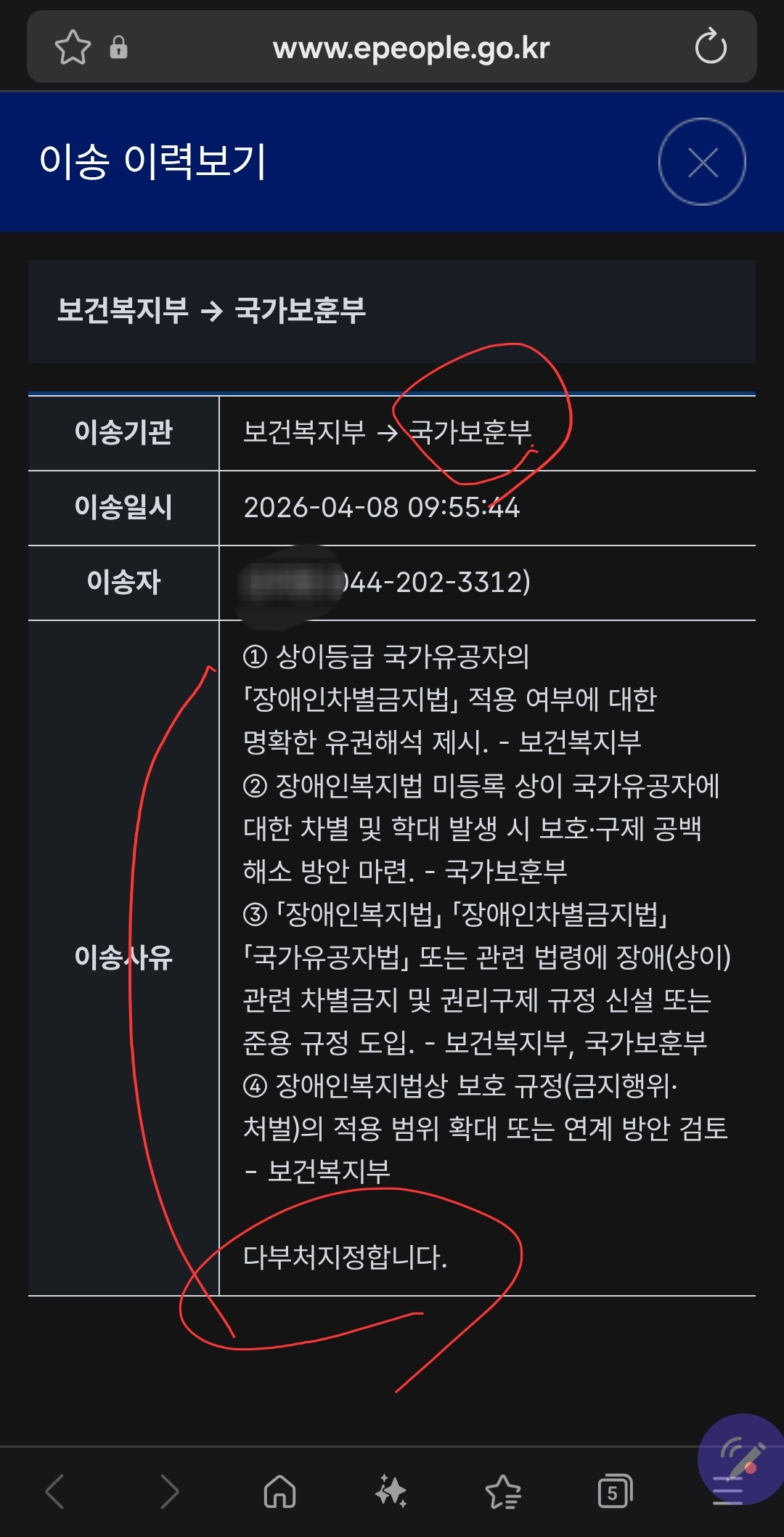 ★ 상이유공자 장애(상이) 관련 차별 보호 공백 및 장애인복지법, 차별금지법 적용 불균형 제도개선 민원<복지부,보훈부 다부처지정 상황