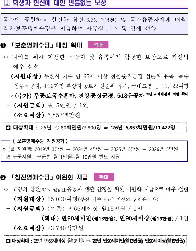 작성자서준(찬욱,80,울산) 작성시간 26.02.02 부산보훈명예수당 아버지가 전상군경인데 5만원 안들어 왔던데 어디에 문의해야되나요? 이번에 신설된거 맞나요