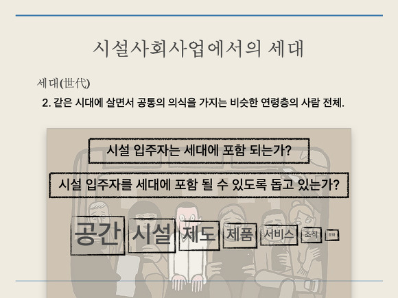 - 그렇다면 우리가 돕고 있는 시설 입주자는 특정 세대에 포함된다고 이야기 할 수 있을까요? 혹시 조금은 다른 관점으로 바라보고 있지 않은가요?