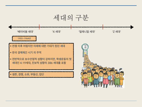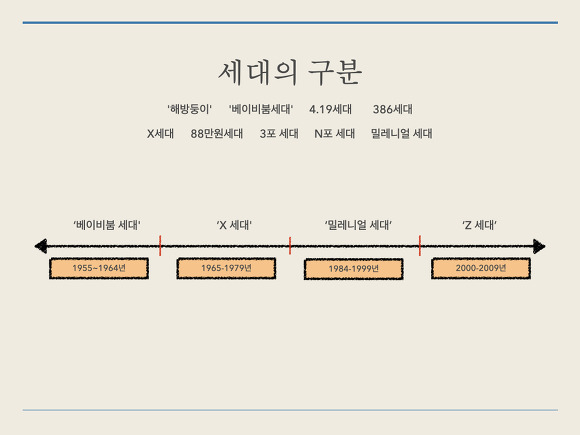 - 시대 상황, 환경에 따라 다양한 세대가 등장했습니다.