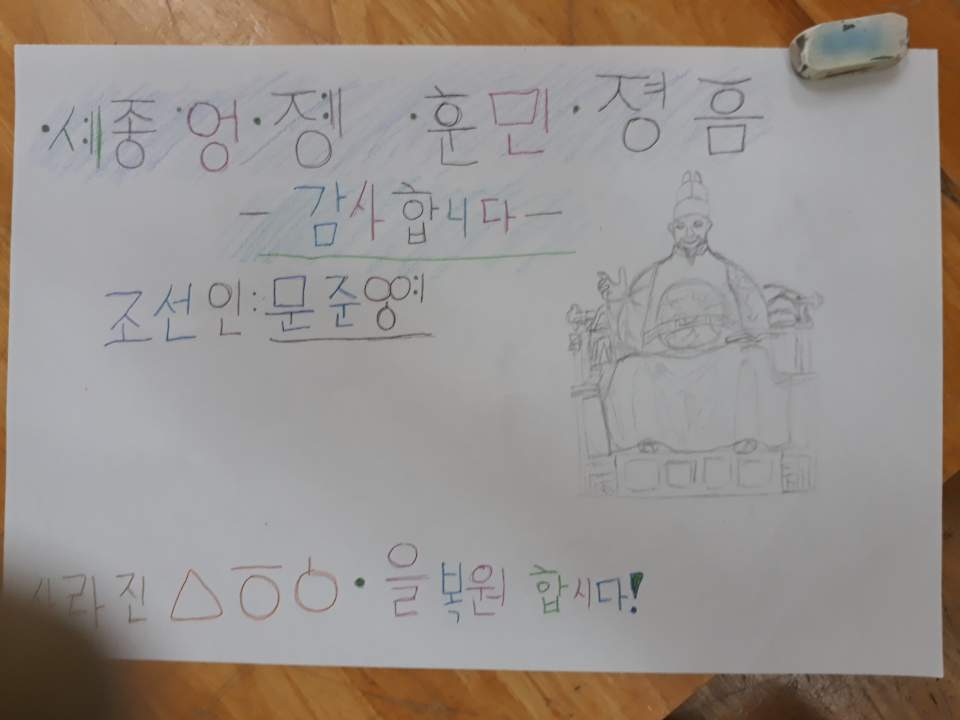 [개천절-한글날 행사] 4학년 - 사라진 옛글자 알아보고 복원 포스터 만들기 작성자김정미|작성시간18.10.06|조회수243 목록 댓글 0 글자크기 작게가 글자크기 크게가 [개천절-한글날 행사] 4학년 - 사라진 옛글자 알아보고 복원 포스터 만들기 다음검색 현재 게시글 추가 기능 열기 북마크 공유하기 신고 센터로 신고 댓글 댓글 0 댓글쓰기 댓글 리스트