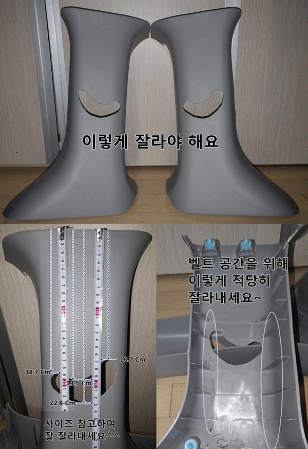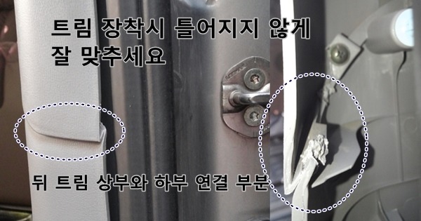 뒤 트림 부착할때 뒤 트림 상부와 하부 사이 잘 맞추어서 장착하세요.