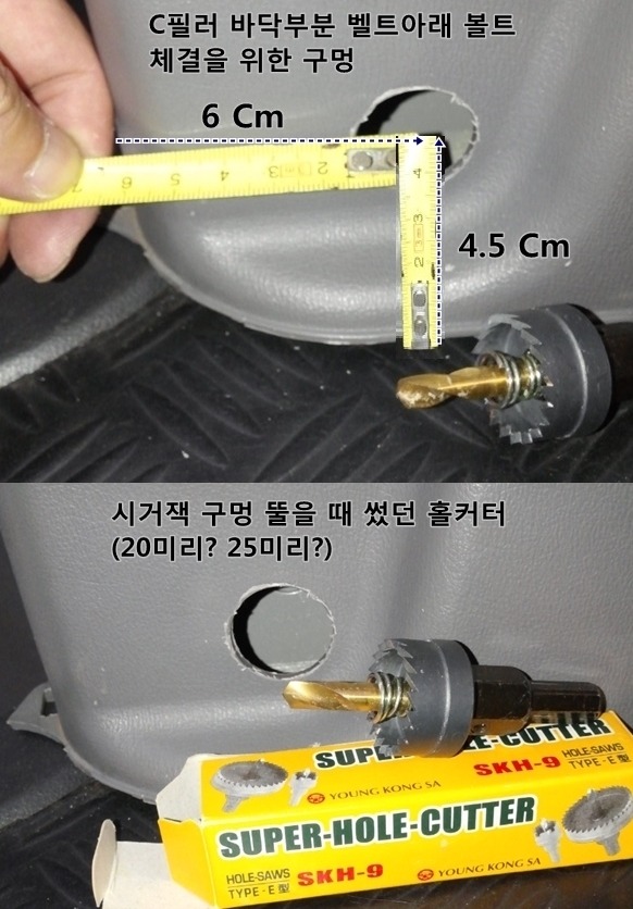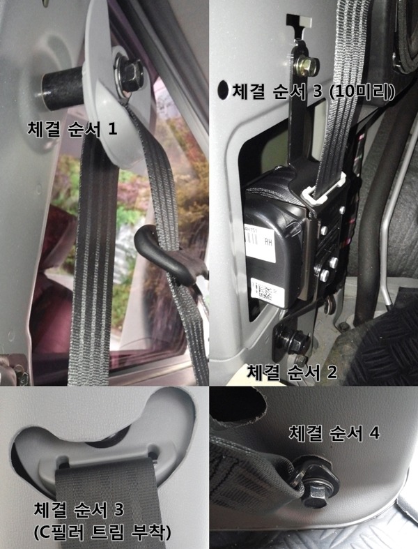 C필러 트림 탈거해서 벨트 구멍 뚫어야 합니다.