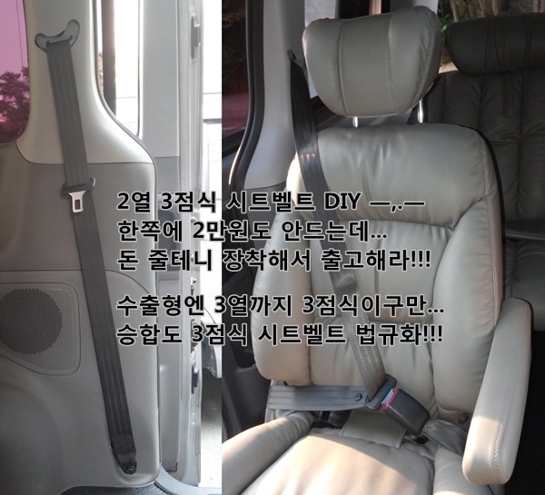 그랜드스타렉스 11/12인승 2열 3점식 안전벨트 DIY 정보입니다.