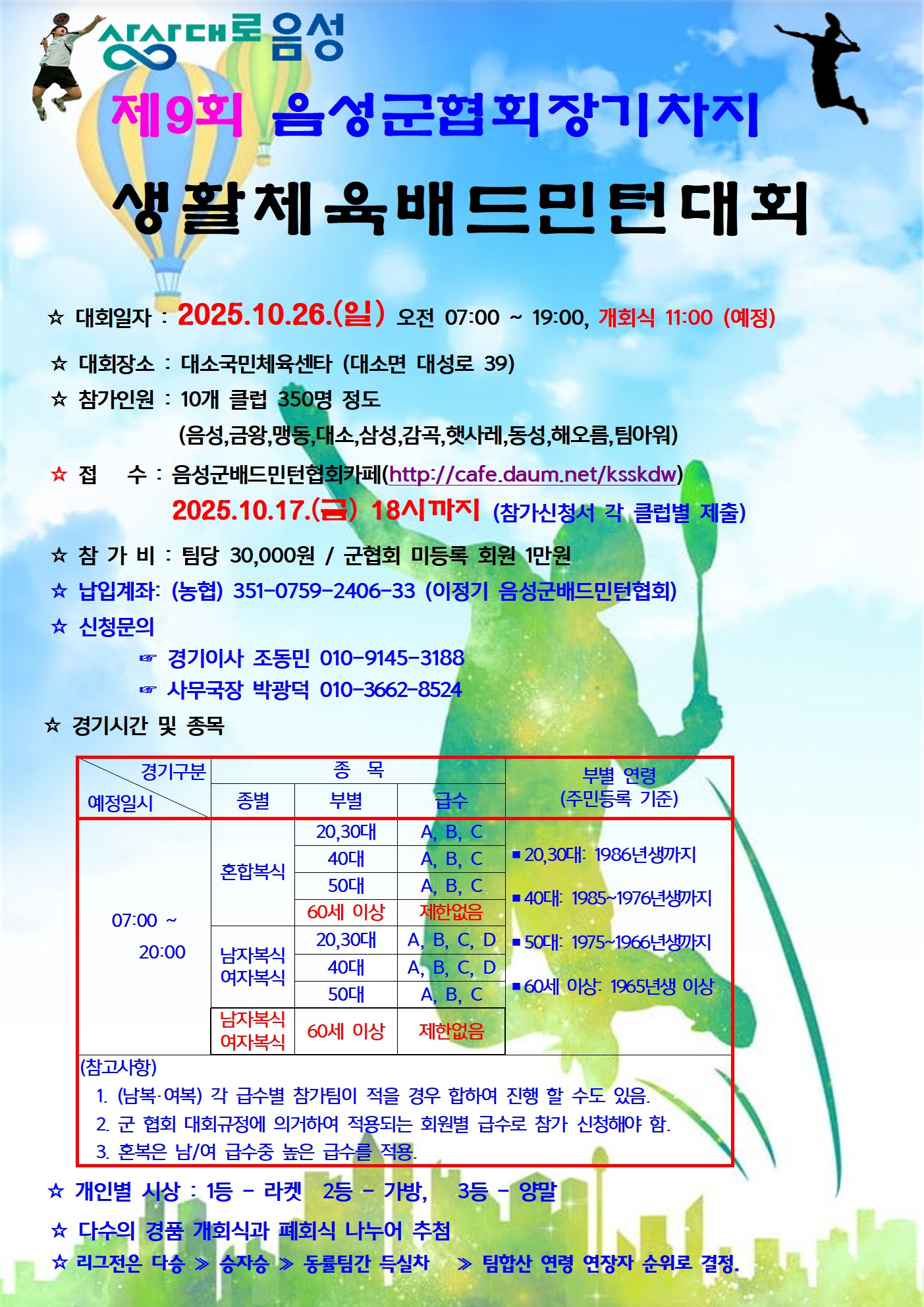 제9회 음성군협회장기대회 포스터 사진 작성자사무국장 박광덕|작성시간25.09.30|조회수53 목록 댓글 0 글자크기 작게가 글자크기 크게가 다음검색 현재 게시글 추가 기능 열기 북마크 공유하기 신고 센터로 신고 댓글 댓글 0 댓글쓰기 답글쓰기 댓글 리스트