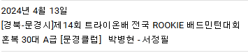혼복 20D 박병현님 전국 A조 뛰신 이력