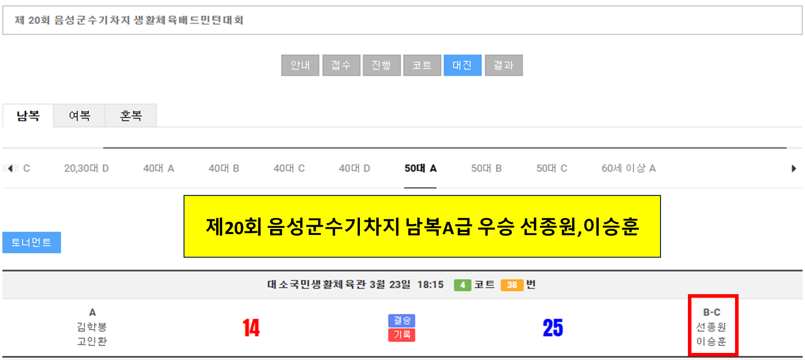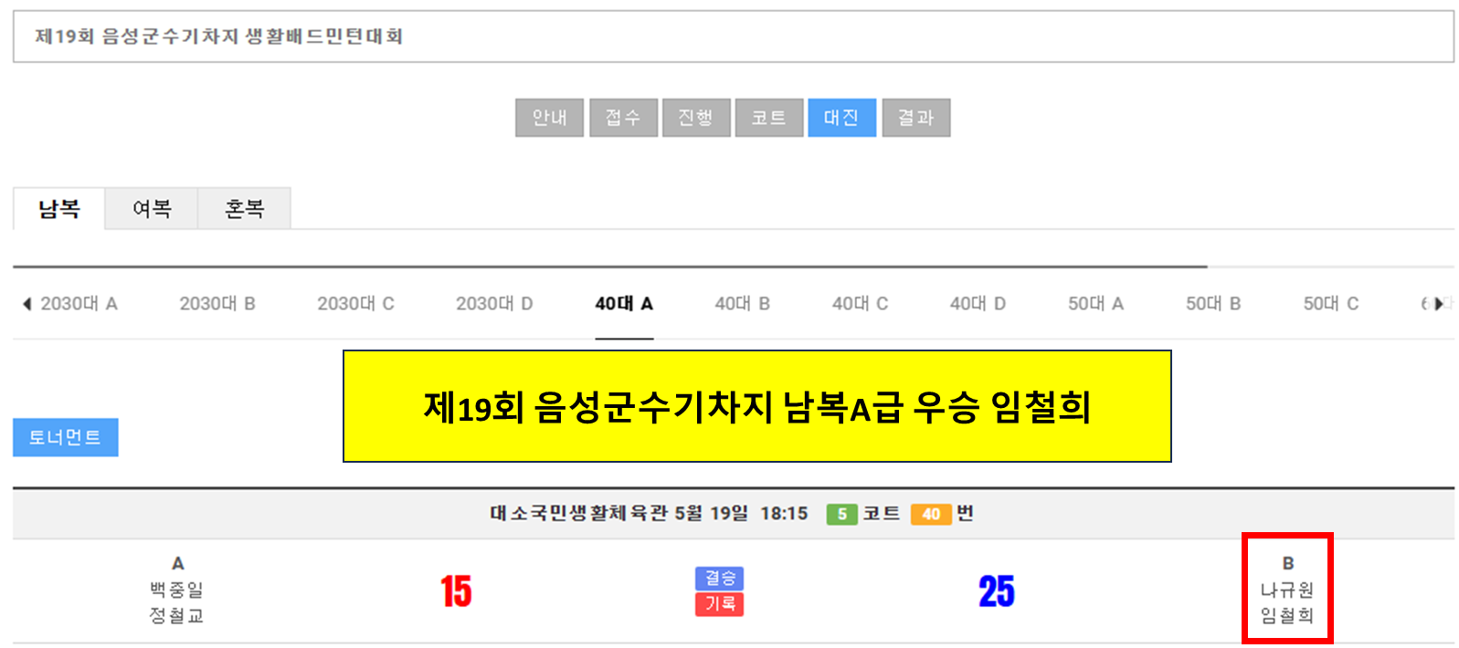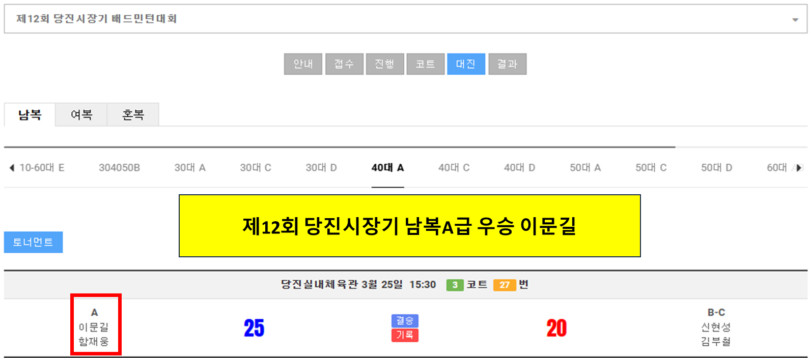 급수 이의신청 합니다. 작성자파워|작성시간25.05.30|조회수108 목록 댓글 0 글자크기 작게가 글자크기 크게가 남복50C1 접수자 이의제기합니다. 모두 B급으로 조정해 주시고임철희, 이문길 혼복도 B급으로 수정해 주세요... 다음검색 현재 게시글 추가 기능 열기 북마크 공유하기 신고 센터로 신고 댓글 댓글 0 댓글쓰기 답글쓰기 댓글 리스트
