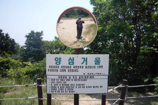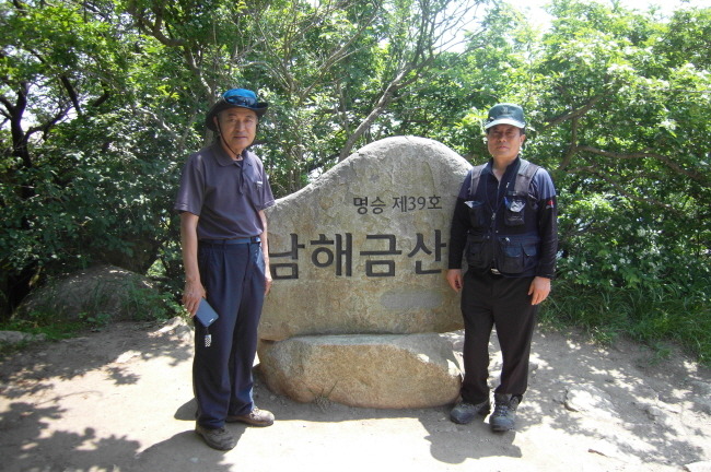 남해 금산 정상석 이름 없는 바위에 앉아 한 컷~ 대한민국 명승 제39호를 알리는 남해 금산 인증샷 정상부의 암석 단군성전 전경 양심거울 앞에서 산행 안내도 자연의 조각품 금산 안내문 상사바위에서 정상 쪽을 향해 상사바위에서 바다쪽을 향해 상사바위 부근에서 문주란님(왼쪽)과 산길나그네님 등산로에 세워진 이정목 쌍홍문 전경 쌍홍문 입구 쪽
