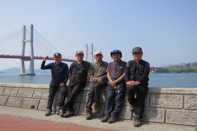 삼천포대교를 배경으로 - 왼쪽으로부터 산길나그네님/달산님/아트님/문주란님