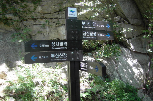 지난 2011년 2월 14일, 부산~경남 일대에 폭설 경보가 내린 날에 산길나그네님의 안내로 찾아갔던 기억을 되살리며, 또 다시 산길나그네님의 안내는 우연의 일치가 아닌 계획된 여정이었기에 발길은 한결 가벼웠다. 금산주차장 약 2km 전부터 가다 서다를 반복하면서 겨우 주차장에 이르렀고 예전처럼 마을버스로 갈아타 보리암 주차장에 도착했다.
