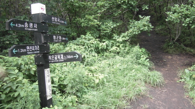 송광사 탐방은 시간의 제약으로 그저 눈요기 정도일 수밖에 없었다. 송광사 경내를 벗어나면서 가파름은 서서히 시작되어 연산봉사거리까지 이어졌다. 바닥은 온통 너덜지대, 어제 내린 비는 등산로를 가로지르며 흘러내려가 일부 구간에선 발길 옮김에 어려움을 주었다.