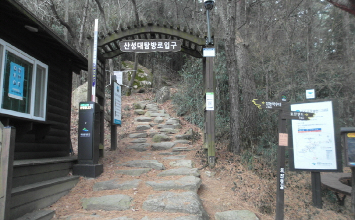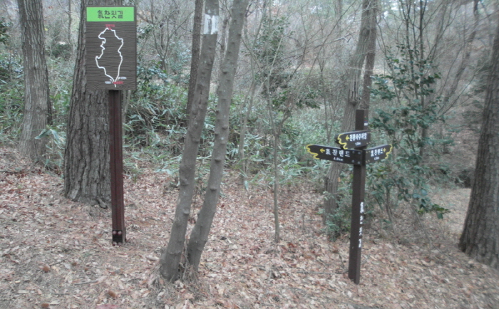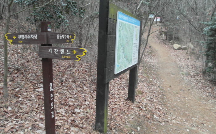 - 기찬묏길(파란선) : 천황사 주차장~기체육공원(산성치)~기찬랜드~용추폭포 : 6.7km(산성치 1.8km 제외)