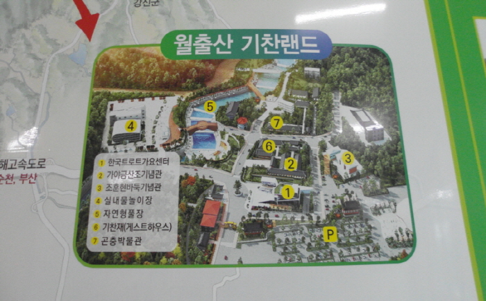 기찬묏길 걷기, 천황사 야영장(주차장) 출발 1시간 50분 만에 종착지 기찬랜드 입구에 도착했다. 이 구간의 거리는 셋(영암군 홈페이지 : 6.5km / 안내도 : 5.3km / 이정목 : 4.9km)으로 나타남은 무엇인지? 처음 개설한 후 수정-보완의 과정을 거치면서 달라지고 있다고 추측되나 찾는 이들에게는 헷갈림을 주고 있다. 영암군에서는 하루라도 빨리 기찬묏길 전 구간에 대한 정립을 해야 할 것 같다.