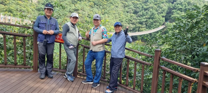 여유가 있었으면 옥순봉 정상? 애초부터 출렁다리를 선택한 터였다. 출렁다리 입구에서 안내문을 살펴본 후 출렁다리를 지나 <벌말마을 쉼터>까지 다녀왔다. 쉼터에선 '청와대 만찬주'로 유명하다는 대강막걸리 시음의 시간도 가졌다.