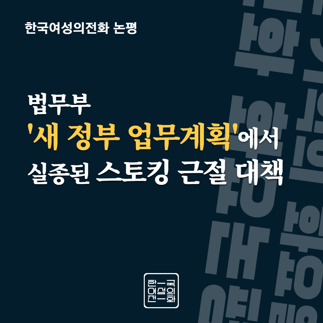 스토킹은 제도적 개입이 필요한 사회적 범죄다. 여성 인권을 침해하는 폭력이며, 그렇기에 가해자에 대한 명확한 처벌과 여성폭력의 특성을 반영한 국가적 피해자 지원 체계가 필요하다. 피해자와 밀접한 생활 관계에 있는 주변인을 포괄하는 지원체계를 구축하고 스토킹 피해자를 위한 전담 지원기관, 스토킹으로 주거·학교·직장을 옮기거나 중단해야 하는 피해자를 위한 주거, 법률, 생계지원 등 구체적인 방안을 마련하라. 스토킹의 협소한 정의 확대, 반의사불벌 조항 폐지 등 스토킹 처벌법 개정 과제 또한 더는 미룰 수 없다. 윤석열 정부는 스토킹 피해자를 보호하고 지원을 강화하겠다는 스스로의 발언에 책임을 다하라.