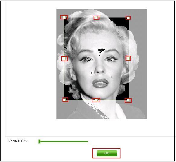 5.사진을 불러 왔으면-> 조절점을 이용해 크기를 조절합니다. *크기조절이 완료되면-> GO 단추를 클릭합니다.