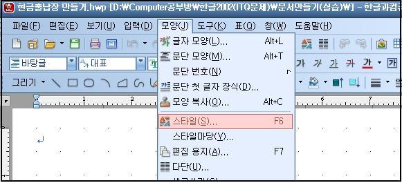 1.새 종이를 열고-> [현금출납장]으로 저장한다. *현금 출납장 문서ㄹ의 글꼴 스타일을 적용하기 위해-> [모양]-> [스타일]을 선택하여-> 스타일 대화 상자를 엽니다.