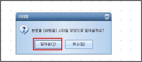 *마지막에 뎦어쓸것인가?를 묻는 창이 뜨면-> [덮어 씀]을 클릭하여-> 적용합니다.