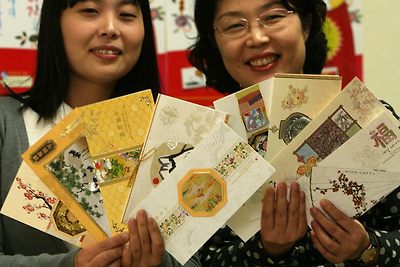 우정사업본부는 연하장 봉투 뒷면에 행운 번호를 인쇄했는데, 내년 2월28일 연하장을 받을 사람들을 대상으로 추첨(Koreapost.go.kr)을 해 국외여행권, 노트북 컴퓨터, 카메라 등 경품을 지급한다. 사진은 서울 광화문 우체국 직원들이 이날 나온 연하장들을 소개하고 있는 모습. 글 김재섭 기자