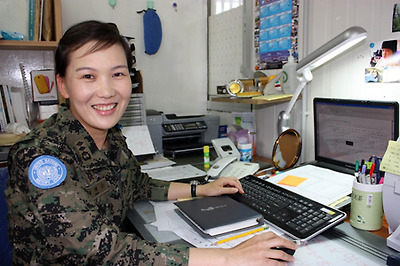 - ▲ 레바논 유엔 평화유지군(UNIFIL)으로 활동 중인 동명부대에서 경리 업무를 책임지고 있는 최혜은 대위(34.여군 46기). / 연합뉴스